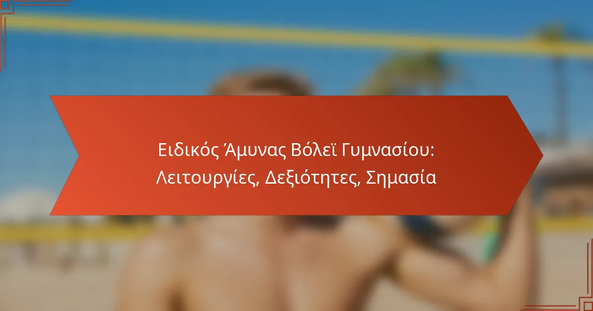 Ειδικός Άμυνας Βόλεϊ Γυμνασίου: Λειτουργίες, Δεξιότητες, Σημασία
