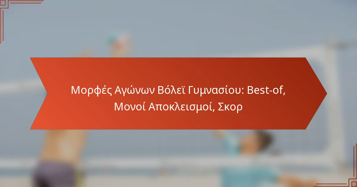 Στο βόλεϊ της γυμνασίου, οι κύριοι τύποι αγώνων περιλαμβάνουν το best-of και την ατομική αποκλειστική διαδικασία, καθένας από τους οποίους προσφέρει μοναδικά χαρακτηριστικά που επηρεάζουν το παιχνίδι και την πρόοδο του τουρνουά. Τα συστήματα βαθμολόγησης, όπως η βαθμολόγηση rally και η παραδοσιακή βαθμολόγηση, παίζουν ζωτικό ρόλο στον καθορισμό των αποτελεσμάτων των αγώνων και επηρεάζουν το πώς οι ομάδες κερδίζουν πόντους. Η εξοικείωση με αυτούς τους τύπους είναι απαραίτητη για την αποτελεσματική οργάνωση των διαγωνισμών και τη μεγιστοποίηση της απόδοσης των ομάδων.